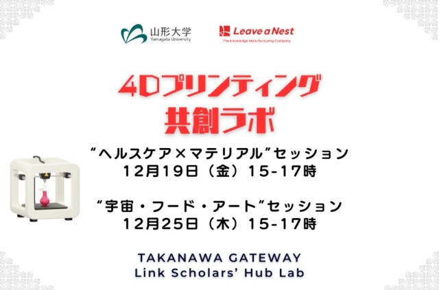 4Dプリンティング共創ラボ、ヘルスケア、宇宙・フード・アートをテーマにセミナーを開催@高輪ゲートウェイシティLiSH Lab(2025.12.19、12.25) December 12, 2025December 17, 2025