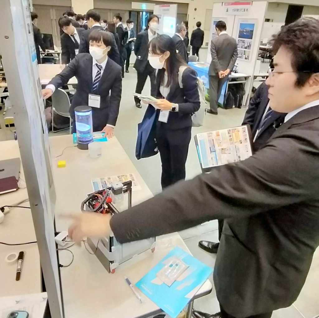 企業の若手のみなさまにたくさん話を聞いていただくことができ、とても良い経験になっているようです。学生たちも企業展示や他の発表を見に行って情報収集を積極的に進めていました。