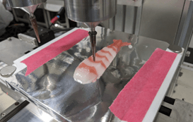 また、AIが食感ややわらかさを解析する食感解析AIも展示。食感まで再現した食の未来を変える最新技術を体験いただけます。さらに「動くお寿司」ディスプレイ台も展示します。
