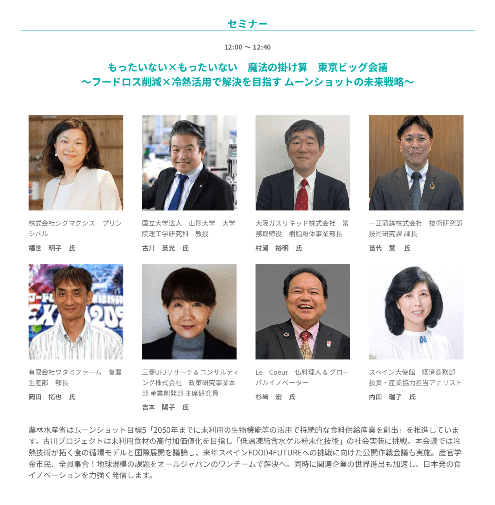 セミナー「もったいない×もったいない 魔法の掛け算 東京ビッグ会議〜フードロス削減×冷熱活用で解決を目指す ムーンショットの未来戦略〜」