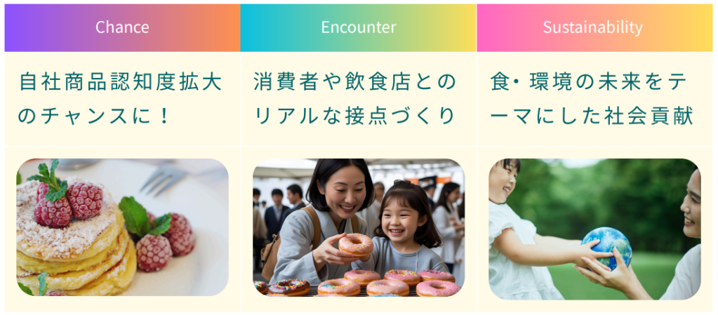 「地球とカラダにやさしい未来のスイーツ展」は、地球環境への配慮と持続可能な食のあり方について広く知っていただくための体験型イベントで、プラントベースフードをはじめとする次世代の「食」に触れられる実食体験を中心に、多様な来場者との交流・情報発信の場を創出します。