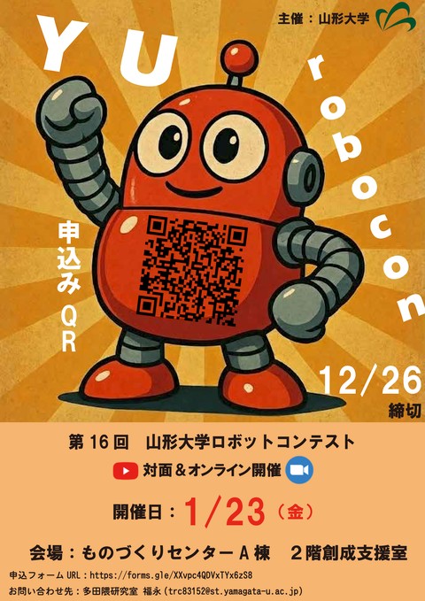 山形大学の学部生や、その他の大学の学生達が、大学における実習や、サークル活動で作り上げた様々なロボットシステムおよびメカトロニクスシステムなどを実演し、アイディアを披露します。