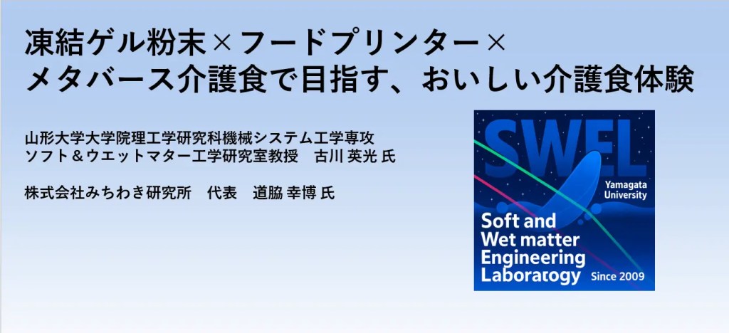 「凍結ゲル粉末×フードプリンター×メタバース介護食で目指す、おいしい介護食体験」「凍結ゲル粉末×フードプリンター×メタバース介護食で目指す、おいしい介護食体験」